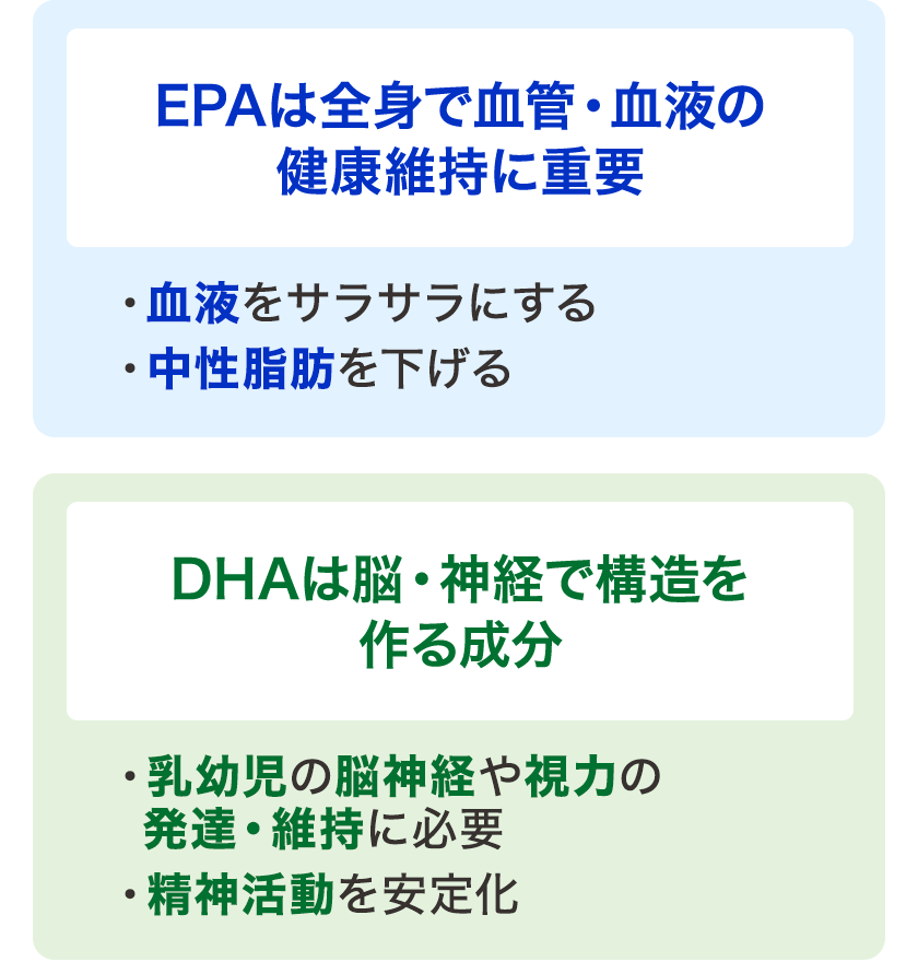 EPAは血液をサラサラにする効果や中性脂肪を下げる効果などがあるため、成人の方にオススメです。