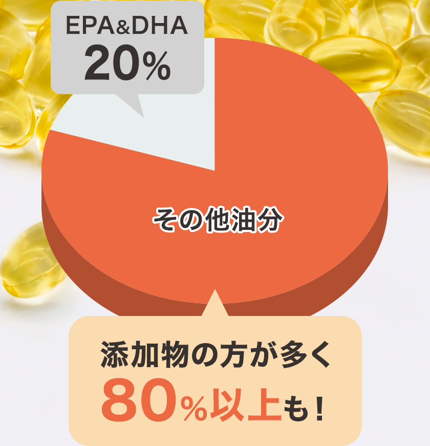 つまり、せっかく健康維持のためにサプリを飲んでいても肝心のEPA・DHAの割合が少なく、商品によっては、「ほぼ添加物」なんてことも…